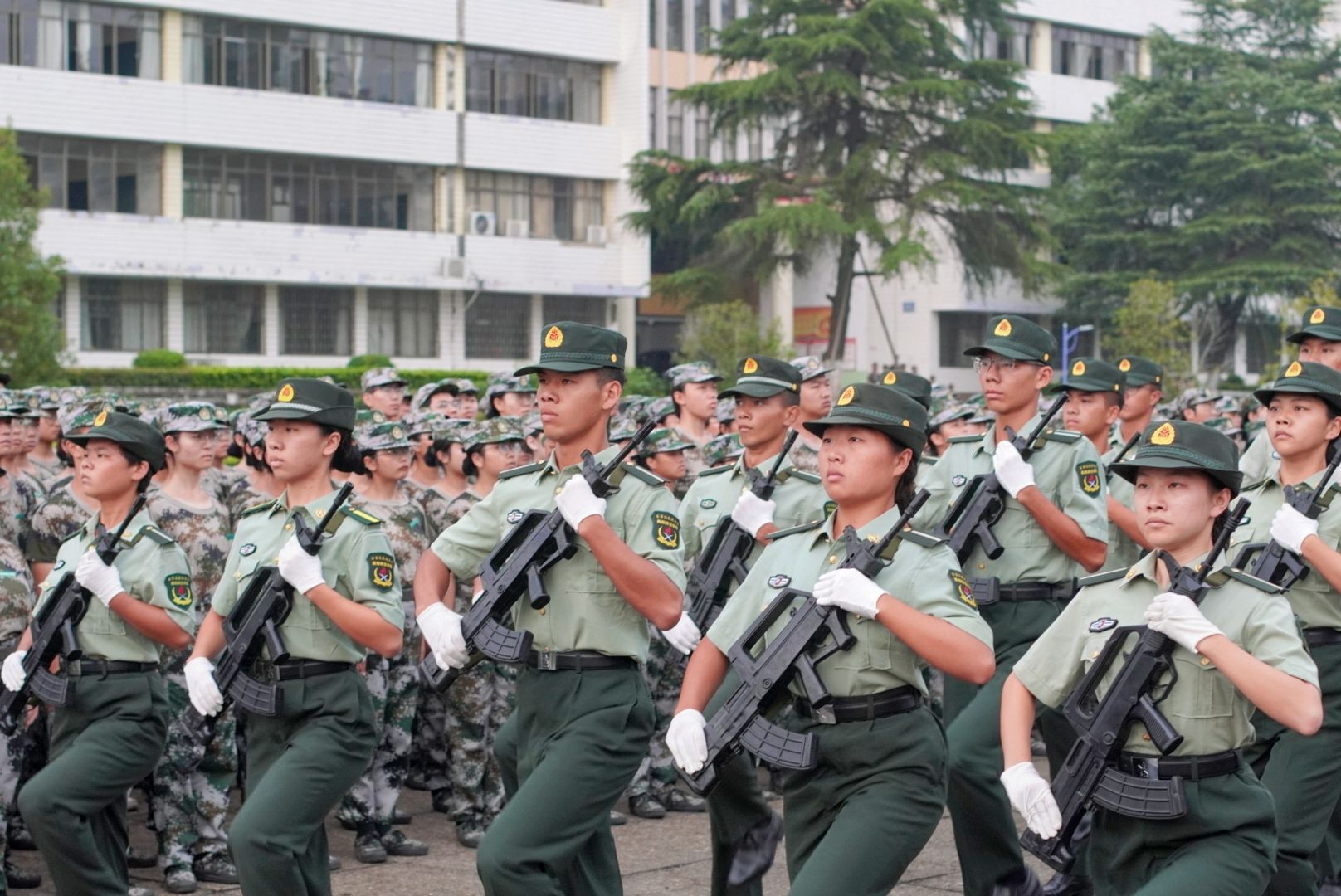 迈着整齐的步伐走向升旗台