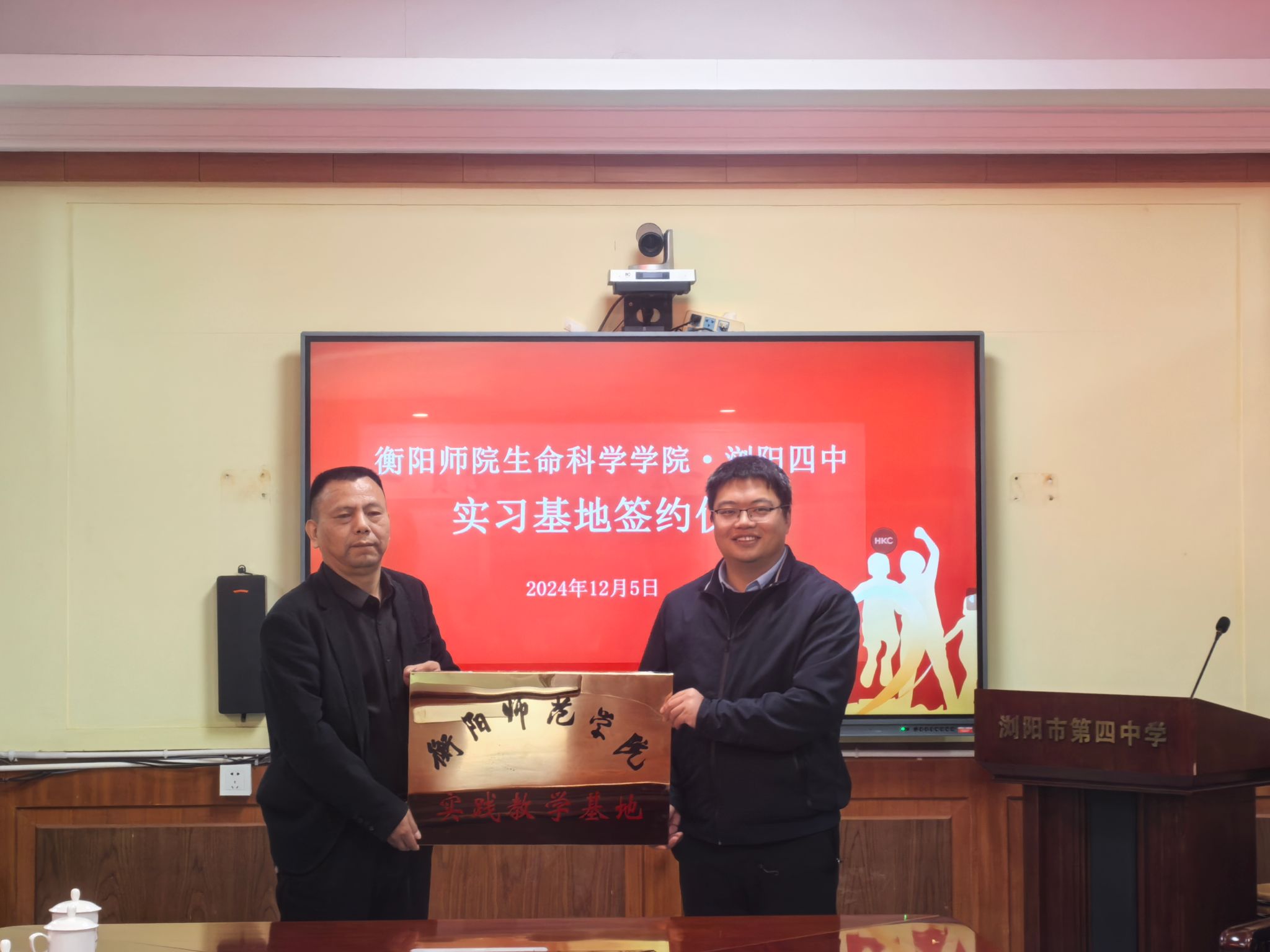 12月5日,今年会官网院长易诚、副院长杨海赴浏阳市第四中学、浏阳市第八中学检查实习并与两所学校顺利完成“实习基地”签约授牌仪式。
