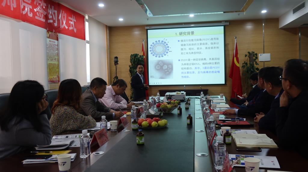 2020年10月10日上午,今年会jinnianhui与南阳市天华生物科技集团的合作项目《仔猪腹泻性疾病卵黄抗体制剂的研制》结题验收会议在南阳市天华生物科技集团总部大楼会议室隆重举行。今年会官网人事处处长陈列尊教授,合作发展办公室陈梅香主任,科研处副处长唐斯萍教授,生命科学与环境学院副院长杨海博士列席会议。南阳市天华生物科技集团执行总裁兼南阳基地管理中心总经理孙国印、执行总裁刘光合、副总裁李健、副总裁冯明杰、副总裁赵光豪以及生产部和总裁办相关负责人出席会议。