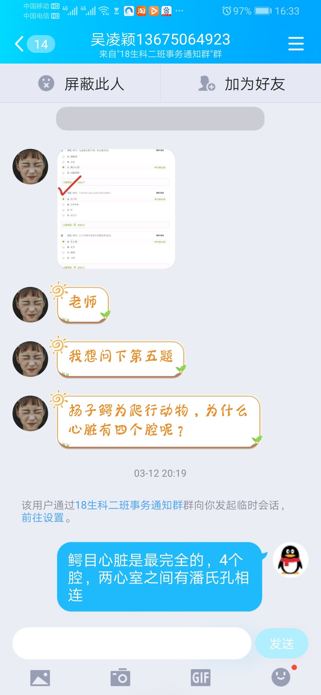 在组织学生进行网络课程学习的同时,老师在上课时间和课后对学生进行答疑指导,下面2图为随机截屏答疑2例。