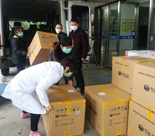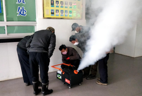 2月8日上午,10台消毒机和20件消毒水送达校园