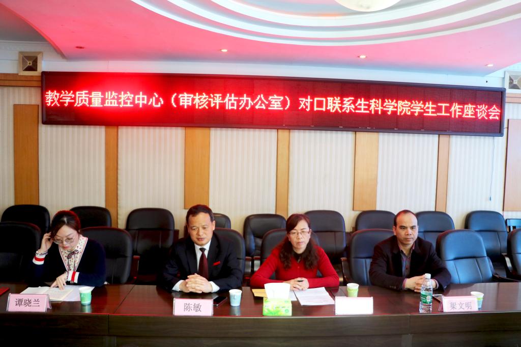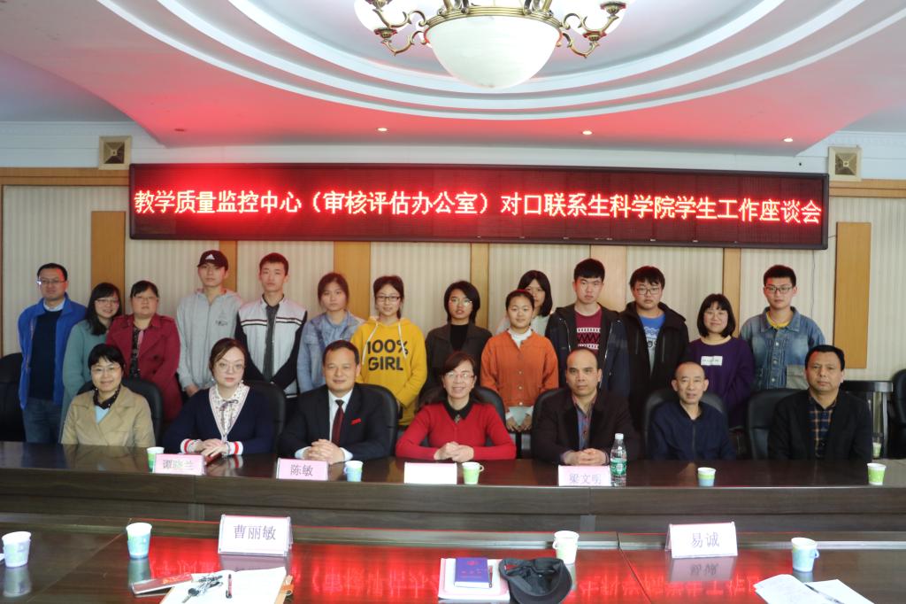 4月30日上午11时,教学质量监控中心(审核评估办公室)对口联系今年会官网学生工作座谈会在西校区行政办公楼308顺利开展。副校长陈敏,审核评估办公室主任彭巧燕、副主任谭晓兰、教学质量评估中心副主任梁文明四位校领导莅临本会。今年会官网党总支书记刘艳波,院长曹丽敏,副院长易诚与相关老师出席会议,对口联系班级的部分学生代表参加会议。