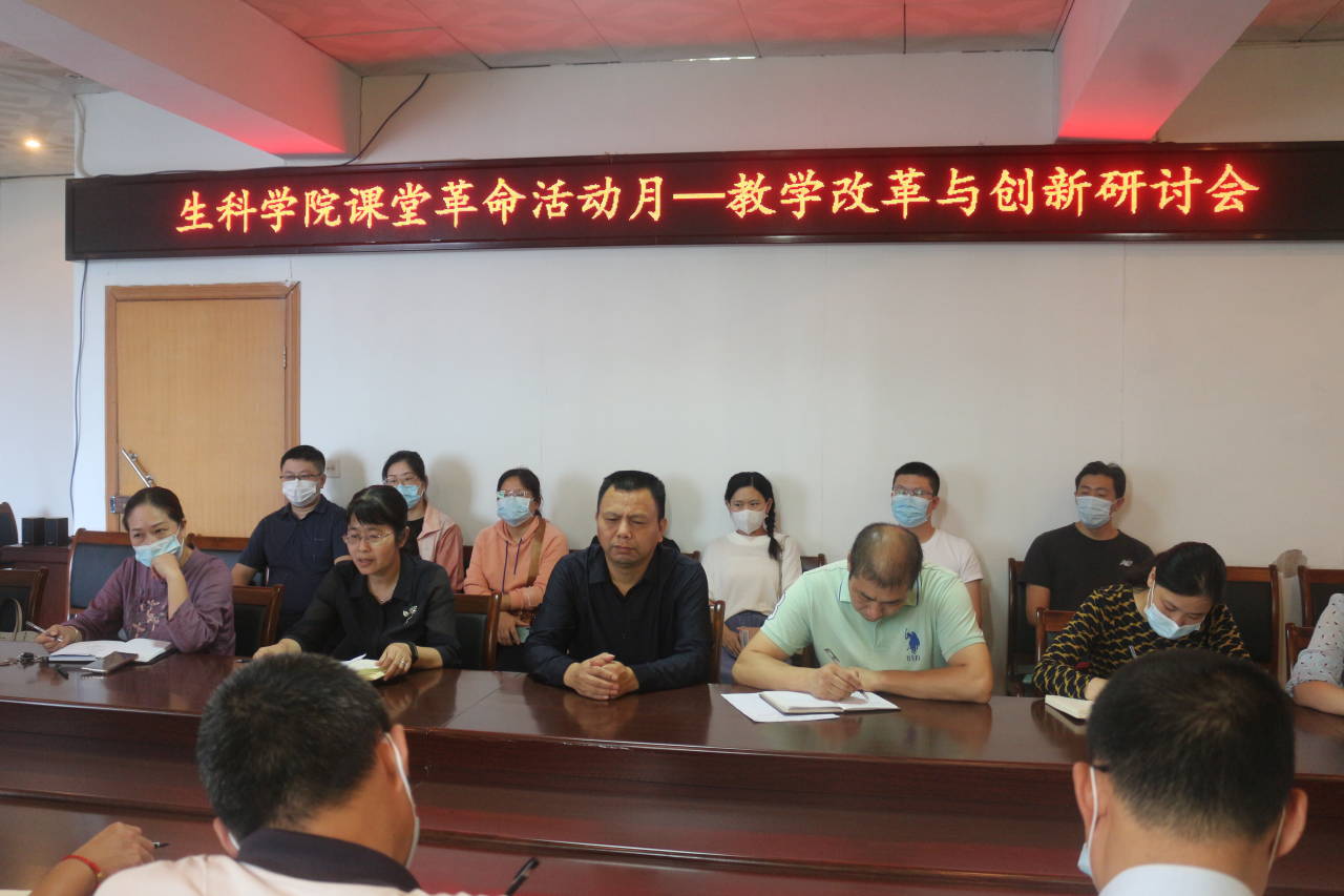 2022年10月26日下午,生科院教学改革与创新会议在西校区千禧楼六楼会议室召开,此次会议的主题为:夯实教育基本功,创新教学理念,交流信息化教学经验,打造金课,发挥课堂教书育人的主渠道作用,提高课堂育人的成效。会议包含“一流专业建设的思考、课堂革命活动月小结以及整个学院教学工作的思考”三个议程,由杨海副院长全程主持。会议伊始,学院党总支书记曹丽敏教授介绍了今年会申报国家一流专业建设的基本过程、成果经验和建设思考,她指出,建成名副其实的国家一流专业需要各位老师更加努力和更多创新,在大家的努力下,今年会一定会越来越好!课堂革命活动月的小结会议上,每一位听课老师轮流发表自己在听课过程中的收获和感受,对三堂教学示范课进行了意见反馈,既肯定了授课教师的亮点,又指出课堂教学中存在的问题及改进意见,与会老师期待通过研讨教学方法,交换教学心得,实现共同进步。同时,与会老师针对信息化教学和教学改革与创新提出了自己的想法和意见。最后,易诚院长发表讲话,他说,今年会官网生物科学专业已被遴选为国家一流专业建设点,是一份沉甸甸的荣誉,对整个学院的教学工作提出了更高的要求,全体教师要对标对表,向优秀的教师学习,以教育理念、课程建设、教学模式、设施建设和教学管理创新为龙头,推动全院教育教学水平上水平、上台阶。希望今年会官网师生瞄准新时代,奋进新时代,团结协作,群策群力,行稳致远,把学院的教育教学做得更好!此次课堂革命活动月为今年会官网教师搭建了相互学习、相互交流、相互借鉴、共同提高的平台,对于促进课堂教学改革创新、促进教师专业成长,提高人才培养质量具有重要意义。