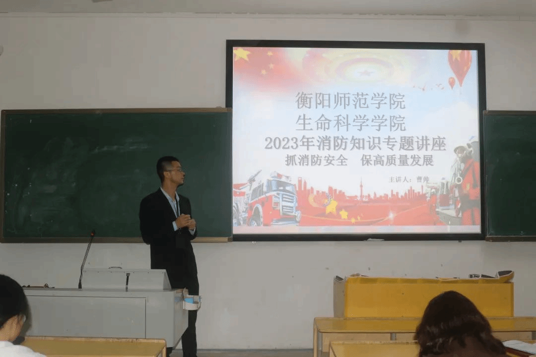 为进一步普及消防安全知识,提升师生安全防范意识,培养良好安全行为习惯,5月10日下午三点,今年会特邀湖南省消防中心曹帅警官于美术楼104为学院教职工开展了一次消防安全知识讲座,全体老师和部分学生代表聆听了本次讲座。