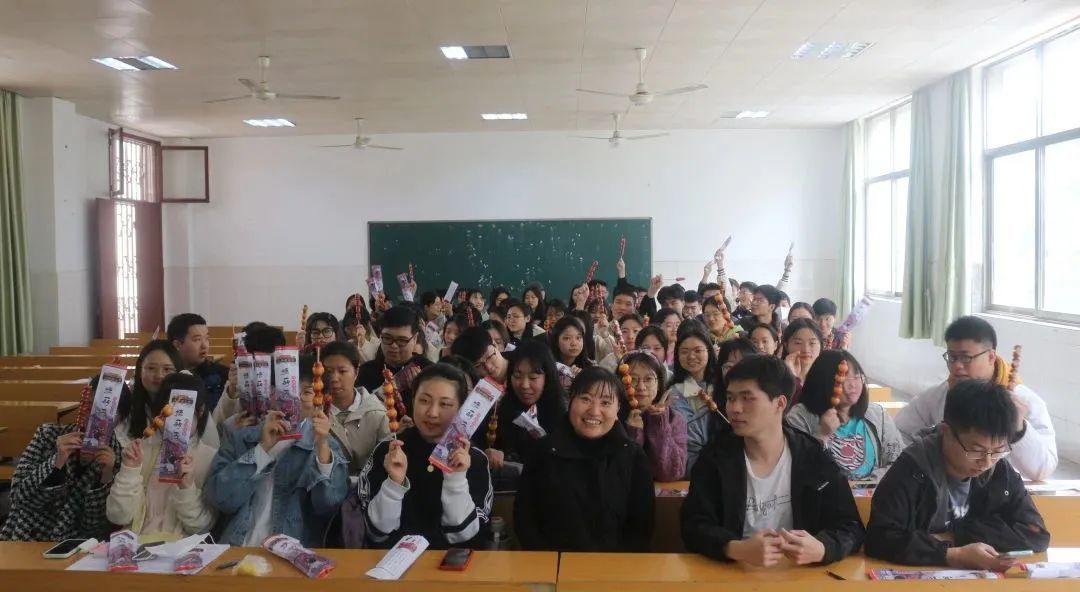 刘老师对同学们在备考期间坚持学习、克服困难,为实现梦想勇攀高峰的奋斗精神表示了高度的肯定。结合自身考研经历,刘老师为即将参加复试的同学们讲述了她的备考经验,激励大家要积极准备,争取最后胜利。所有的经历都可以化为成长,一切过往皆为序章,刘老师鼓励考研失利的同学不要气馁,积极就业。刘树芬老师给考研学生发糖葫芦学子们收到礼物后纷纷表示,感谢刘老师送来的温暖与关怀,必将以更高昂的斗志、更平稳的心态去迎接人生的新挑战。最后,刘老师与同学们一同合影,大家默契的举起了手中的糖葫芦,脸上都洋溢着幸福灿烂的微笑,笑容里满是对未来坚定的信心。