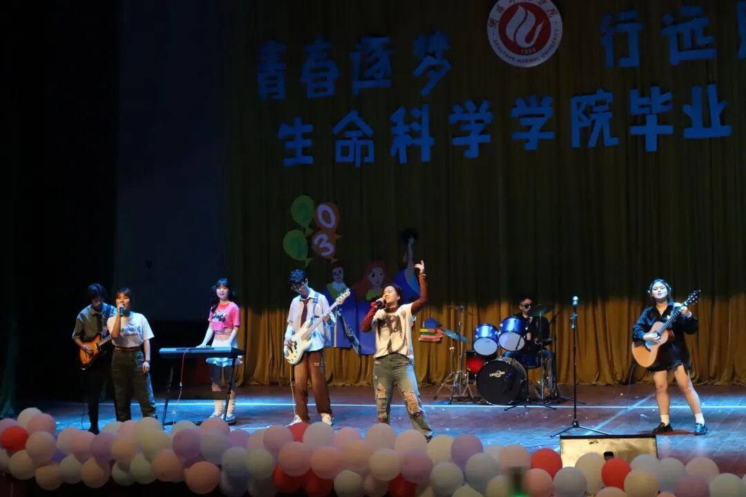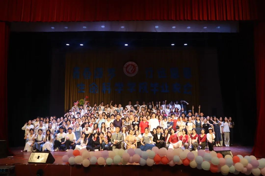 晚会开始前,毕业季主题视频在大屏幕上循环播放,记录着同学们四年来的生活点滴,也承载着学院师生温情满满的毕业祝福!随后,一段活力四射的开场舞《奔跑的青春》拉开了晚会的序幕。晚会分为三个篇章,节目涵盖舞蹈、歌曲、配音秀、小品、乐器表演等多种类型,生动呈现了生科学子积极进取、奋发向上的良好青春风貌。小品《我是理财小能手》、舞蹈《Youce》、走秀《寻梦,诗酒趁年华》、配音秀《你‘配’吗》、朗诵《毕业季,我们》等,或以诙谐幽默的故事激励广大学子惜时如金,勤勉奋斗,不负韶华,或以优美的舞姿表达着对母校的深情切意,或以动人的音符说着离别的不舍和对未来的期冀。晚会中,学院领导为优秀毕业生代表准备了拨穗仪式,寓意学有所成、扬帆启航。同时,老师们准备了惊喜节目—《那些花儿》,伴随歌曲旋律,每位同学被师生情谊所感染,大家共同合唱,深深表达了学院对毕业学子的美好祝愿和殷切期望。