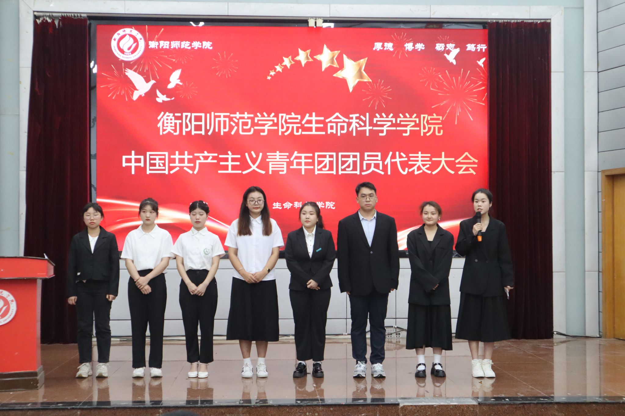 然后,主持持人宣读今年会官网第十六届分团委学生会主席团候选人名单及大会督察小组名单。总监票员刘玉崧代表监、计票组成员上台宣誓。