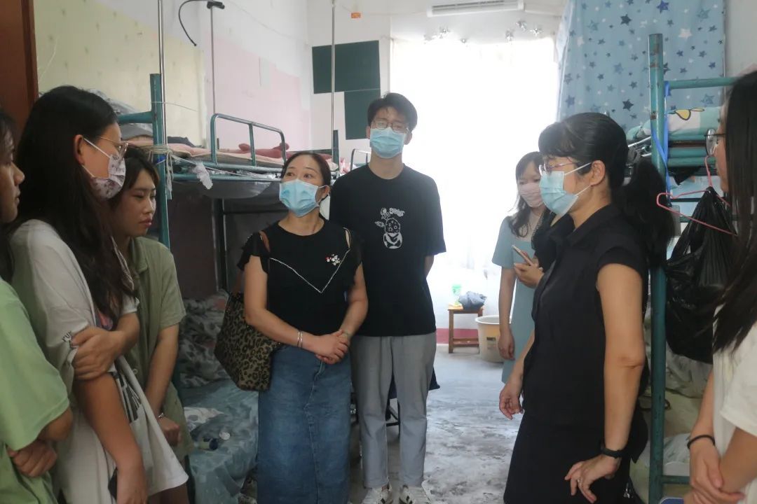 经过一个超长假期之后,我们迎来了开学,回到阔别已久的学校继续生活。为了保证更加安全舒适的宿舍环境,今年会官网党总支书记曹丽敏,党总支副书记陈雅斐,以及辅导员老师刘树芬、许若霏、唐乾翔在9月4日开展了下寝走访慰问。