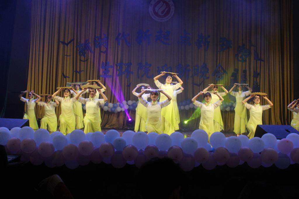 中间一辑祝福视频表现出生环学院师生之间、生生之间那一份深切感情。而后,舞者身着复古绿衣手执扇起舞,一支古典舞《醉春风》展示着东方神韵。rap说唱《说不清楚》、院啦啦队舞蹈、小品《好日子》等节目交错呈现,整场晚会精彩不断,高潮迭起。
