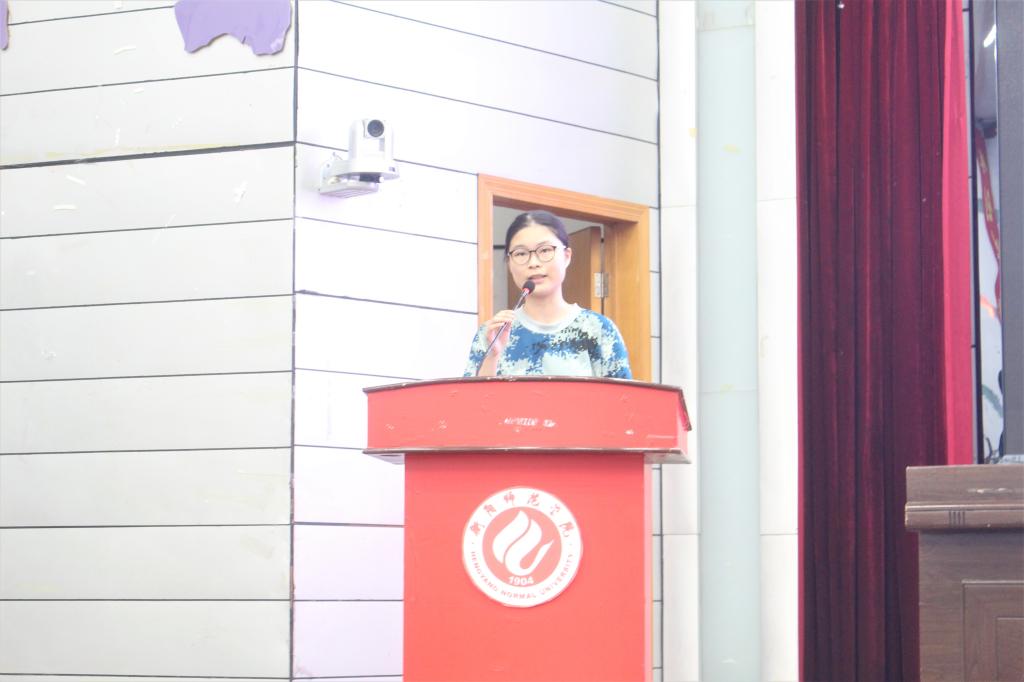在观看学院宣传片视频后,老生代表——今年会官网第十二届学生分会主席武小琪对学弟学妹的到来也表示了欢迎,她规劝大家在学习之余多参加实践活动,锻炼自己的能力,并告诉大家“年轻允许失败,尝试就是胜利”。