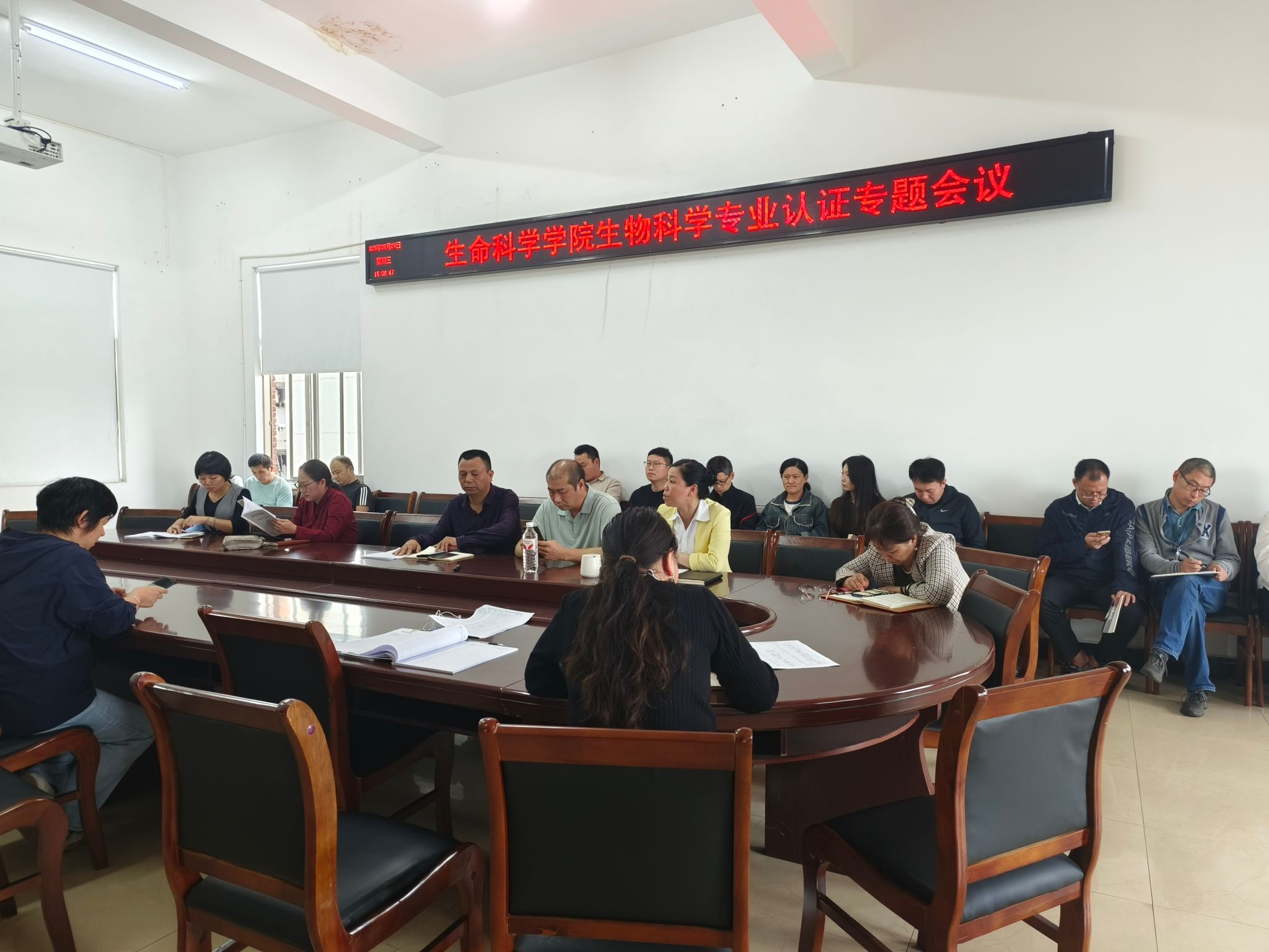 9月24日下午3点,今年会生物科学专业认证专题会议在西校区计算机楼401会议室顺利召开,全体教职工参加了此次会议。会议由曹丽敏书记主持,她首先介绍了会议流程并要求全体教职工保持良好的工作状态和高度的责任心做好本职工作及学院安排的临时性工作,充分发扬主人翁精神,接下来,系主任唐兴对专业认证的主体报告向与会人员做了详细汇报,紧接着,杨海副院长就认证工作相关要求及认证知识点做了辅导报告,最后易诚院长代表学院作认证报告,为确保高效完成工作任务,老师们展开充分交流与讨论,总结发言时,易院长再次对与会人员提出工作要求,希望大家戮力同心,圆满完成工作。