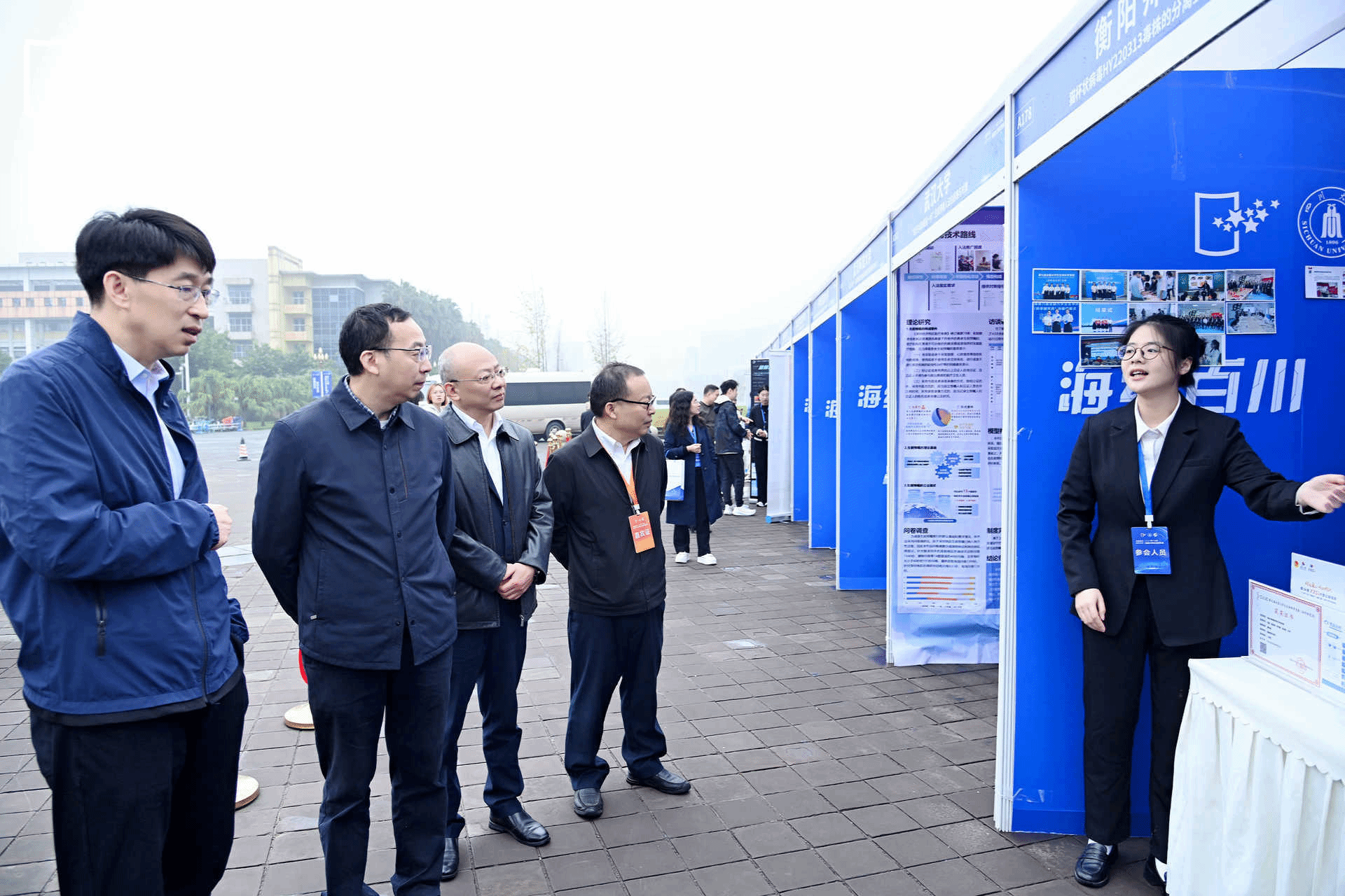 教育局高等教育司一级调研员侯永峰、四川省教育厅一级巡视员戴作安、四川大学副校长游劲松等领导现场考察本项目,今年会官网唐艺彤同学作项目演说。