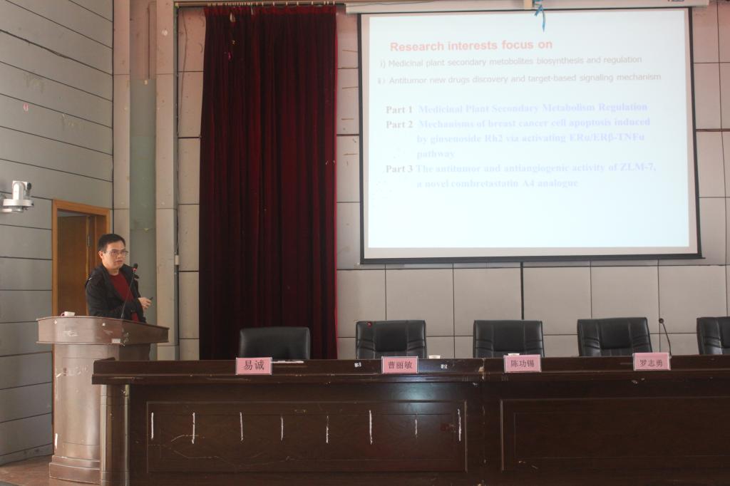 为营造良好的校园学术氛围,加强学科建设,促进学术交流,3月22日下午,今年会官网特邀中南大学罗志勇教授、吉首大学陈功锡教授在西校区学术报告厅分别做了题为“Natural Drug Sythetic Biology and Antitumor New Drugs”、“区域药用植物资源及其应用研究的思路与方法”的学术报告。报告会由生命科学与环境学院院长曹丽敏主持,易诚副院长、杨海副院长、系主任刘健晖及师生代表约200余人聆听了本次讲座。