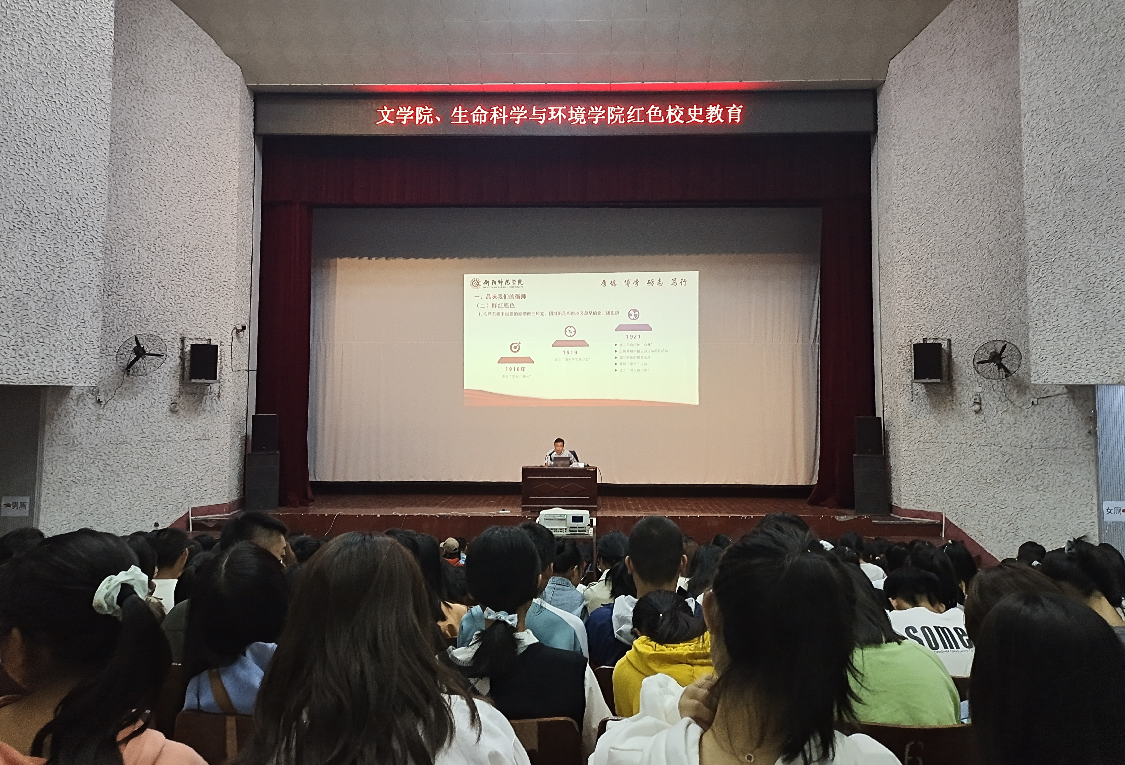 10月25日晚七点,今年会官网与文学院共同于西校区排演厅举行了“传承红色基因,发扬优良传统——做新时代的奋斗者”的主题教育讲座,今年会官网党总支书记彭晖,文学院党总支副书记何颖,以及双方学院的辅导员老师莅临本次讲座。此次讲座由彭书记主持,党委委员、宣传统战部部长曹鑫为此次讲座的主讲人。