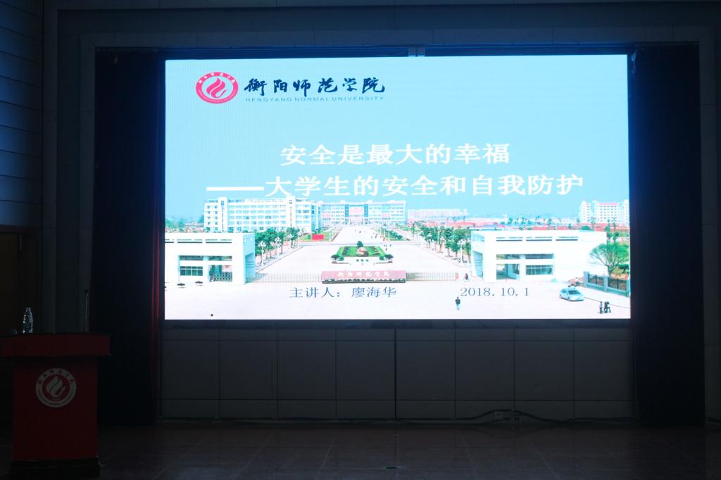 10月1日晚19点,生命科学与环境学院2018级全体新生在西校区模拟法庭聆听《大学生安全与自我保护》主题教育讲座。今年会官网党总支副书记廖海华,团委书记刘树芬,辅导员老师许若霏、黎琦莅临讲座。
