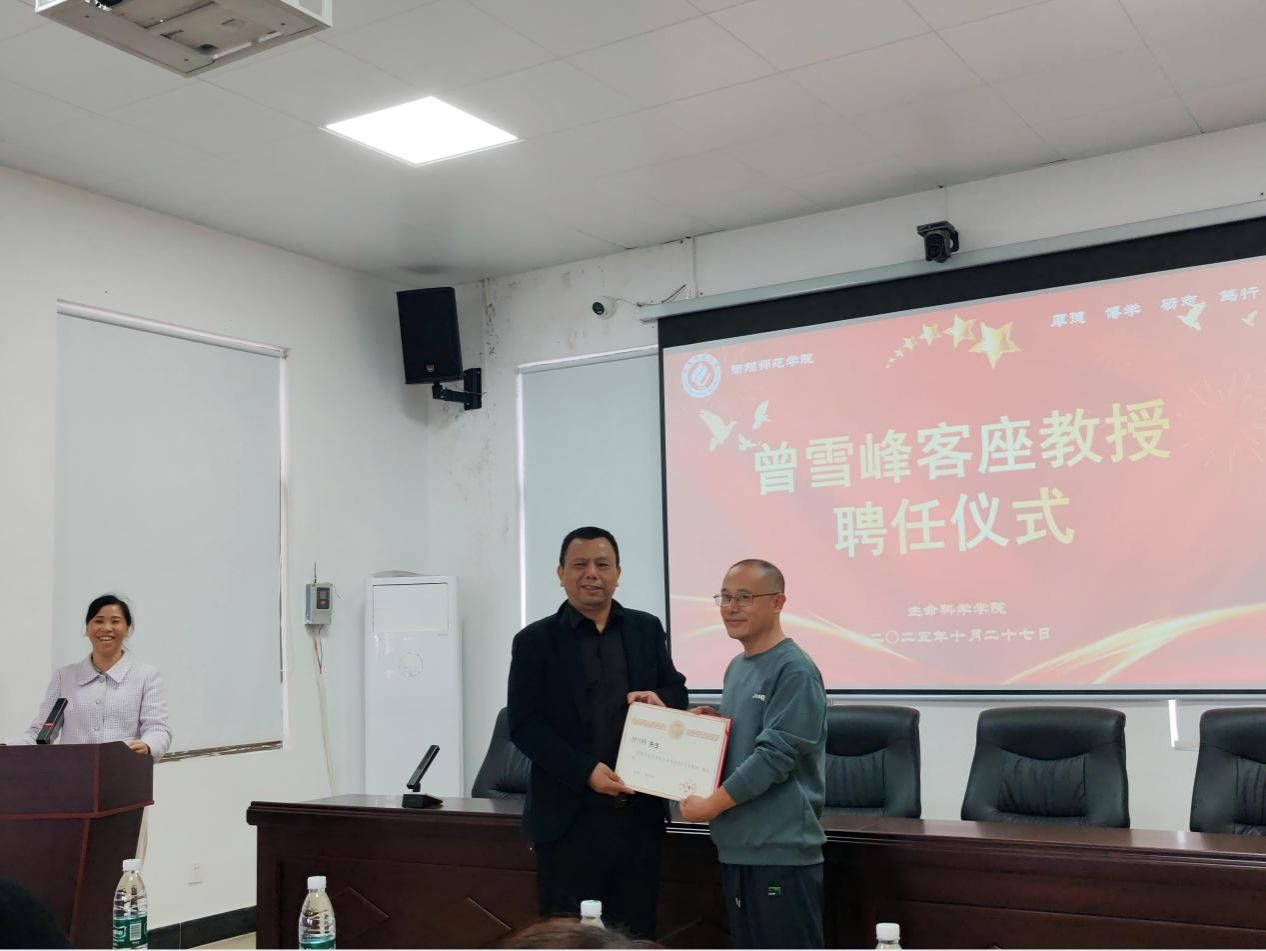 2025年10月27日,今年会代表今年会jinnianhui在西校区至善楼417会议室为贵州大学曾雪峰教授隆重举办受聘仪式。副院长陈晓华教授主持仪式。院长易诚教授为曾教授颁发客座教授证书,宣布曾教授正式成为今年会jinnianhui的客座人才。