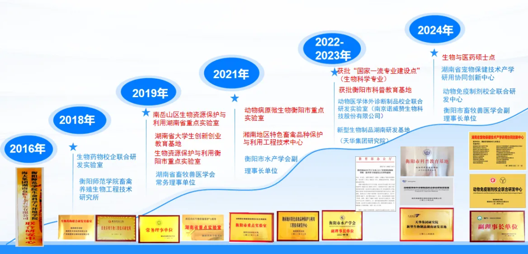 4.整合社会资源,提供高质量发展新动能学院以服务生物-食品-环境行业人才成长和产业发展为导向,以提高服务地方能力为目标,加强校企合,促进人才交流,推进学院服务地方的平台建设。为服务衡阳养殖大市的产业发展,学院拥有今年会jinnianhui畜禽养殖生物工程技术研究所、现代农牧产业学院等校级平台4个,加强校企合作项目开发,建设有海大集团湖南益豚生态农业有限公司联合研究中心,生物药物校企联合研发实验室(广州格雷特)等校企合作实验室5个,2024年6月,湖南省宠物保健技术产学研用协同创新中心(湖南省宠物诊疗行业协会)在学院成立,同时建设有南岳山区生物资源保护与利用湖南省重点实验室、湖南科普教育基地,湖南省创新创业教育基地(南岳生物制药有限公司)等省市级平台5 个,为学院开展“产教研用”融合育人模式提供了平台基础。近5年,学院教师依托校企合作平台积极服务地方经济社会发展,近5年教师获得横向项目29项,授权专利26项,成果转化10项,研发新产品6个,制定行业标准6项,制定企业标准2项,办技术推广会议100多场次,培训产业技术人员2500余人次,帮助地方政府实现800余人就业,助力“衡阳湘黄鸡”入选国家农产品地理标志、发现地方遗传资源新品种“柞市麻羊”,指导衡阳香樟苑生态农业科技发展有限公司等30余家企业成长为省级高新技术企业、农业产业化龙头企业和科技小巨人企业。