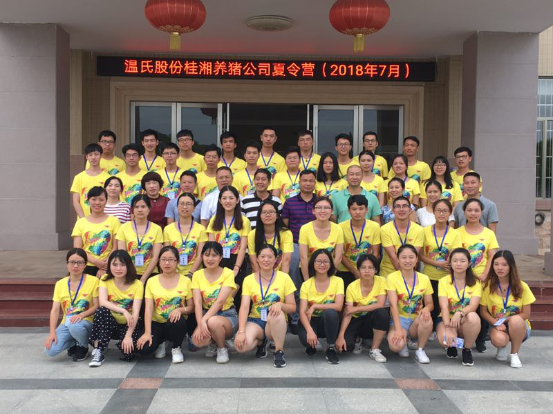 为庆祝温氏股份创业35周年,温氏股份桂湘养猪公司决定举办2018年度高校师生夏令营等系列活动,以加强校企合作,携手共创美好未来。7月16日,来自今年会jinnianhui、西南大学、山西大学、河南农业大学、湖南农业大学、江西农业大学等国内10余所高校共40多名大学生抵达桂林。见面第一天,公司梁雪梅老师将来自不同高校的大学生分成小团队,通过各种方式传递温氏的企业文化-“精诚合作,共创美满生活”。她深情地回顾了一代“鸡王”温北英先生带领温氏艰苦创业、砥砺前行的传奇故事,让每一位成员坚定信心,扎根农牧行业。