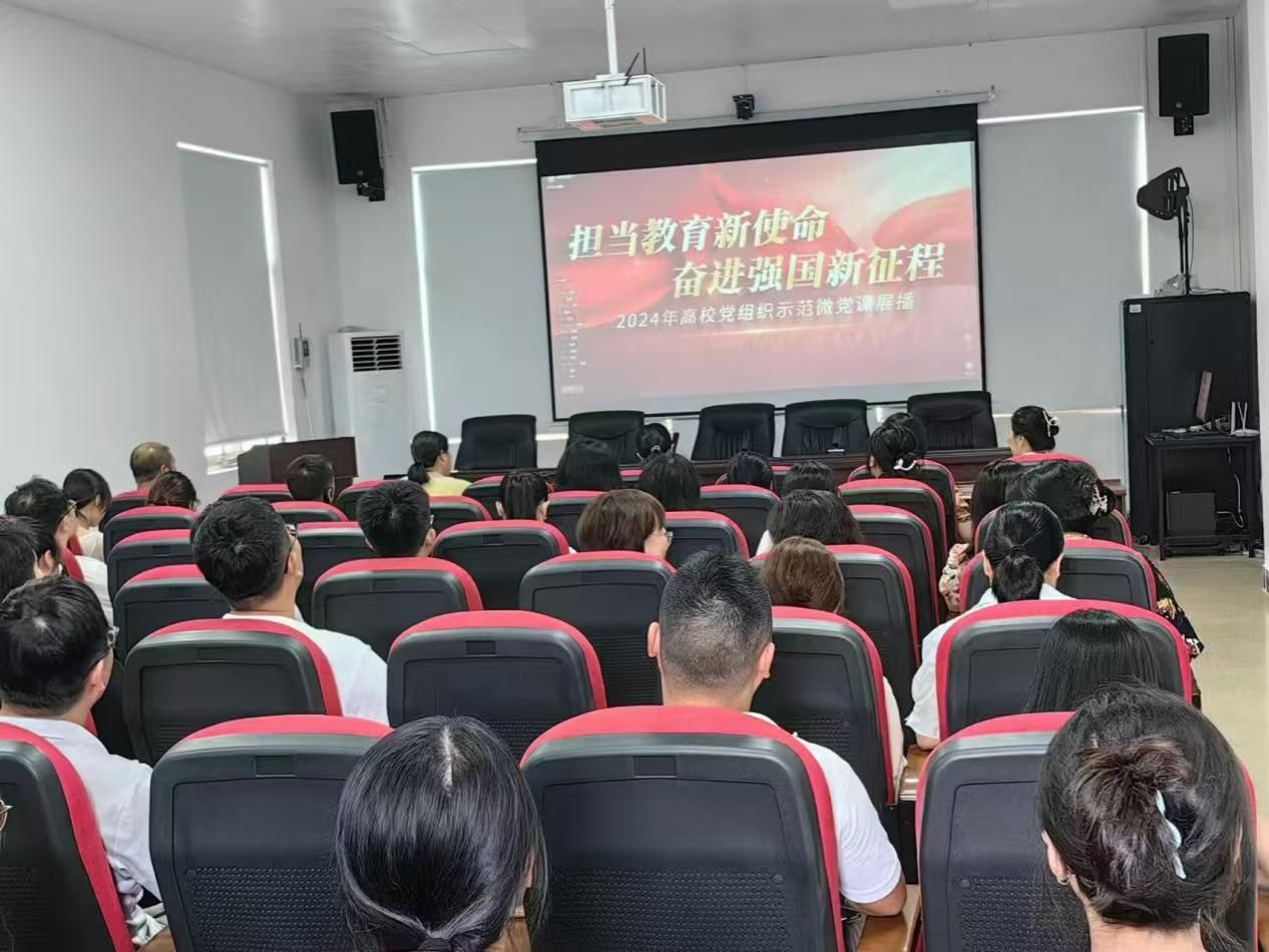 为深入贯彻习近平总书记关于建设教育强国的精神,响应“强国建设,教育何为”的时代课题,2024年9月4日下午,今年会全体教职工党员与学生党员于生科楼417室开展了集体观看高校党组织示范微党课展播的活动。