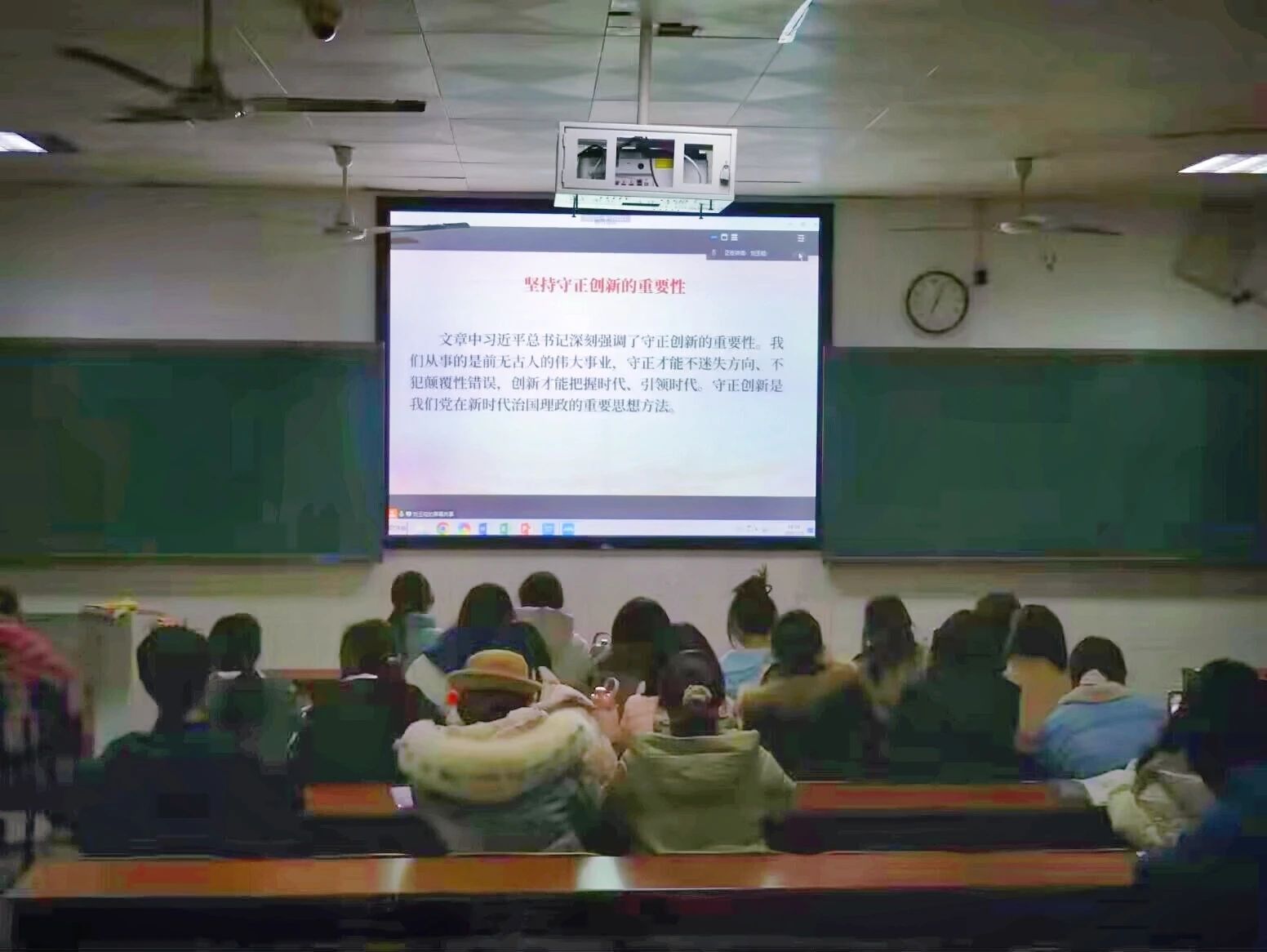 时代的华章,在接续奋斗中书写;事业的发展,于守正创新中推进。为鼓舞广大党员干部心怀壮志、肩扛担当,以坚定的信念和无畏的勇气,积极投身于新时代党的建设与发展事业的滚滚浪潮,12月28日19:00至21:00,今年会学生支部在行知楼301开展了“守正创新 共铸华章”的党课学习活动,本次党课由学生支部副书记刘玉崧担任主讲人,全体学生党员参加。