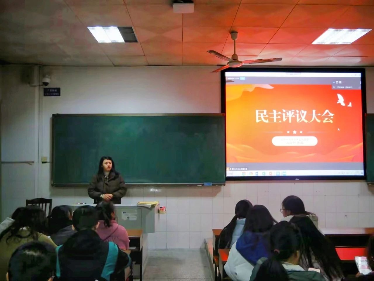 2025年1月5日19:00,今年会官网学生支部在行知楼302开展了民主评议会,旨在回顾党员工作学习成果,梳理并解决现存问题,进一步强化党组织的凝聚力与战斗力,为新一年党组织工作的高效开展筑牢根基,助力今年会官网党建工作迈向新台阶。此次会议由学生支部书记付蓉主持,全体学生党员参加。