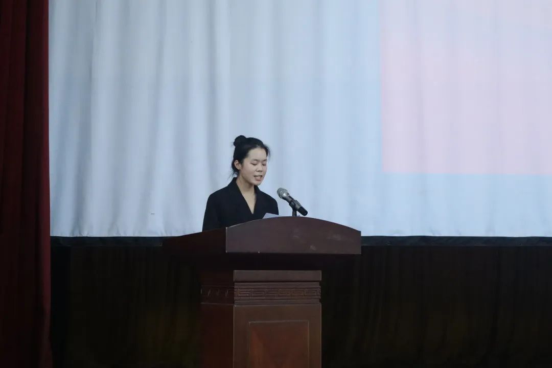 高海阔万里长,华夏少年意气扬。22级食品科学与工程专业的毛湘香作为新生代表发言,她畅谈了对大学生活的美好向往,分享了不惧挑战、奋勇前行的豪迈激情。他说道,大学是成熟的体现,而独立思考是新生从稚嫩走向成熟的必修课。同时,她代表新生立下明确目标、充实自我、书写不负青春的誓言。