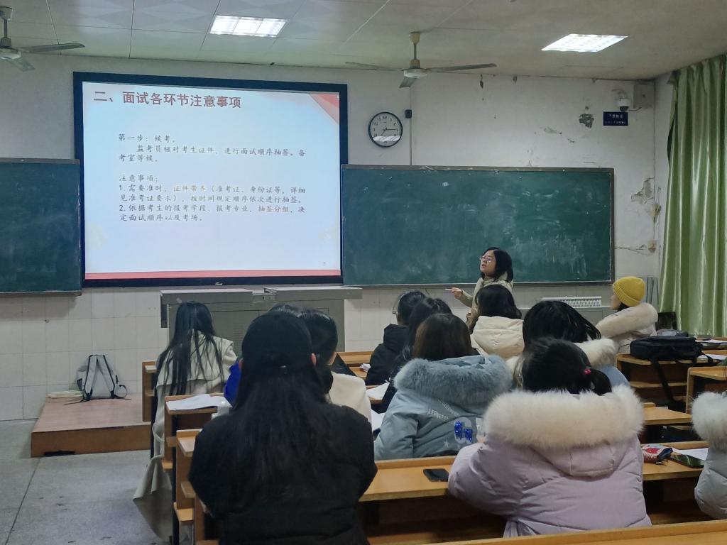 12月22日晚,今年会官网在外语楼101召开了教师资格考试面试指导会议,江伟民、王娜、刘宇华等老师,以及2018级通过教师资格笔试的同学参加了本次会议。