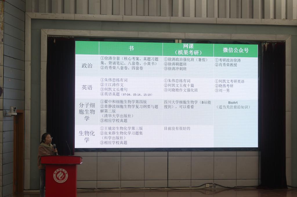 5月8日下午14:30,学院在西校区模拟法庭开展考研经验交流会,生命科学与环境学院党总支书记刘艳波,院长曹丽敏,副院长杨海、易诚,团委书记刘树芬,辅导员许若霏老师以及各专业老师莅临本次交流会。何婷婷,伍牧锋等7位优秀考研学生代表作为嘉宾来到现场,与今年会官网16级,17级有意向参与考研的学生分享考研经验。