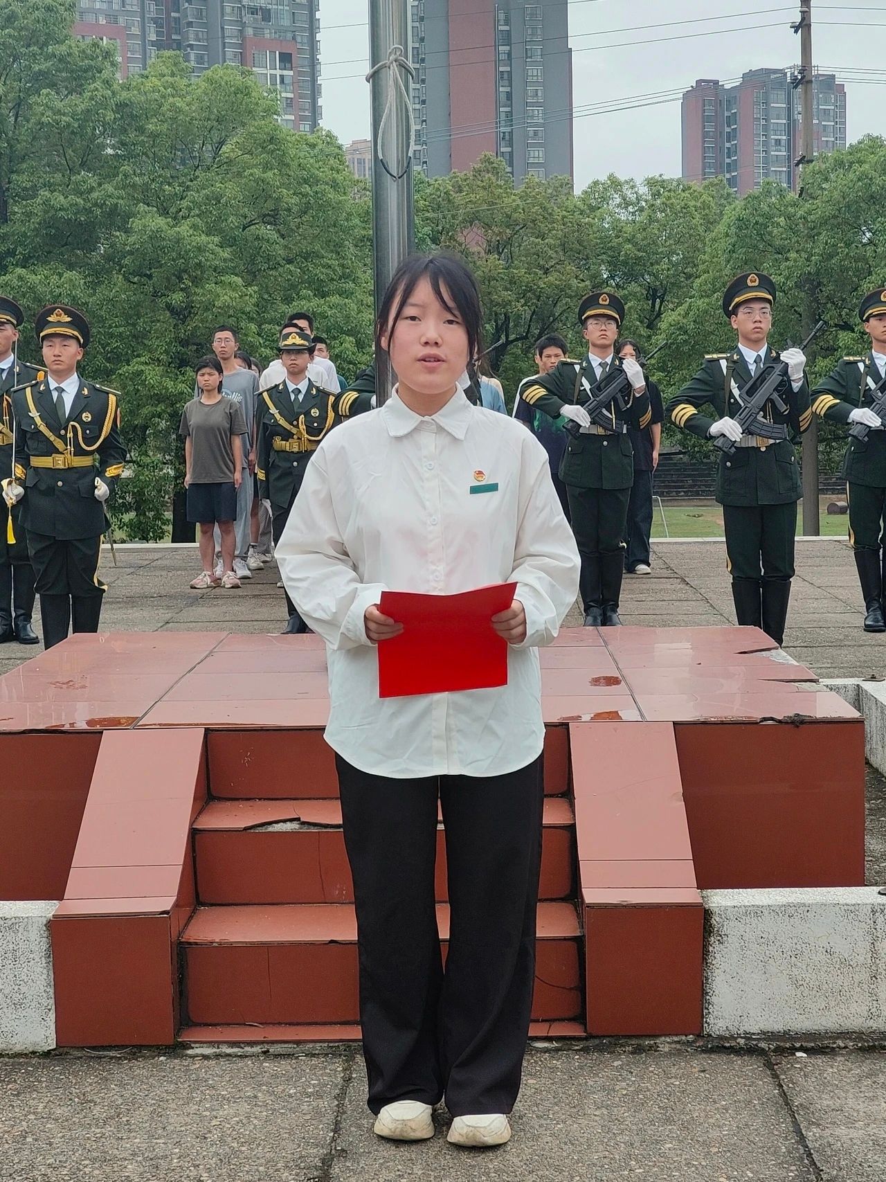 在升旗的过程中,我们不仅是观众,更是参与者。让我们在今后的学习和生活中,以升旗仪式为契机,更加自觉地践行社会主义核心价值观,培养良好的品德和行为习惯。让我们共同努力,让每周的升旗仪式成为我们奋斗的动力和信仰的寄托。让五星红旗在我们心中永远飘扬!
