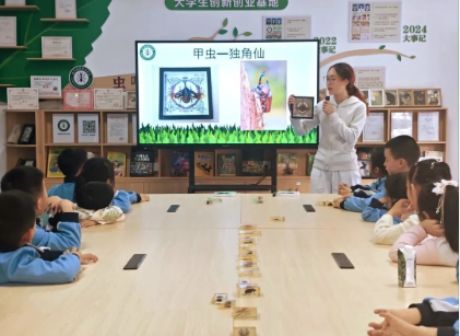 随后,小晗老师“请”出这节课堂的小主角——蝴蝶和甲虫标本,带领同学们了解标本的含义。同学们的小脑袋瞬间都凑了过来,一眨不眨地盯着老师手中的标本。一个小男孩忍不住大声问:“老师,它们死了吗?”老师笑着解释:“这就像是昆虫去世后拍的立体照片,有了它,咱们就能随时观察昆虫,学习有趣的知识呢!”同学们更好奇了,脑袋挤作一团,争着要看“透明小房子”里的标本,都想瞧瞧它们到底啥样。