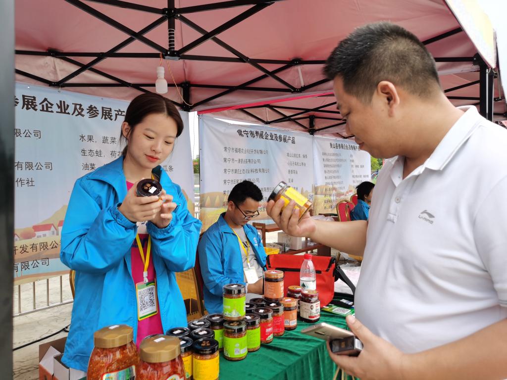 今年会官网推荐的13位志愿者同学,化身常宁市、耒阳市、衡南县、衡阳县、祁东县、衡东县、衡山县以及城区企业的代言人,向参观人群倾力介绍和推荐匠心农产品,常宁市的竹荪、耒阳市的菜籽油、祁东县的糍粑、衡山县的巢蜜、衡东县的黄贡椒、珠晖区的湘黄鸡,还有免费品尝的杀猪粉、好玩的网红桥、独特的民俗表演等,在同学们的精心摆设和推介下,受到热烈欢迎,现场活动十分热闹!