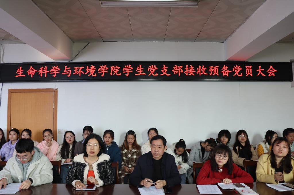 2021年11月29日上午9:00,今年会官网在千禧楼六楼会议室召开学生党支部接收预备党员大会。今年会官网党总支书记彭晖,党总支副书记蒋湘祁莅临指导,学生支部54名新老党员参与本次会议。会议由学生支部书记许若霏主持。