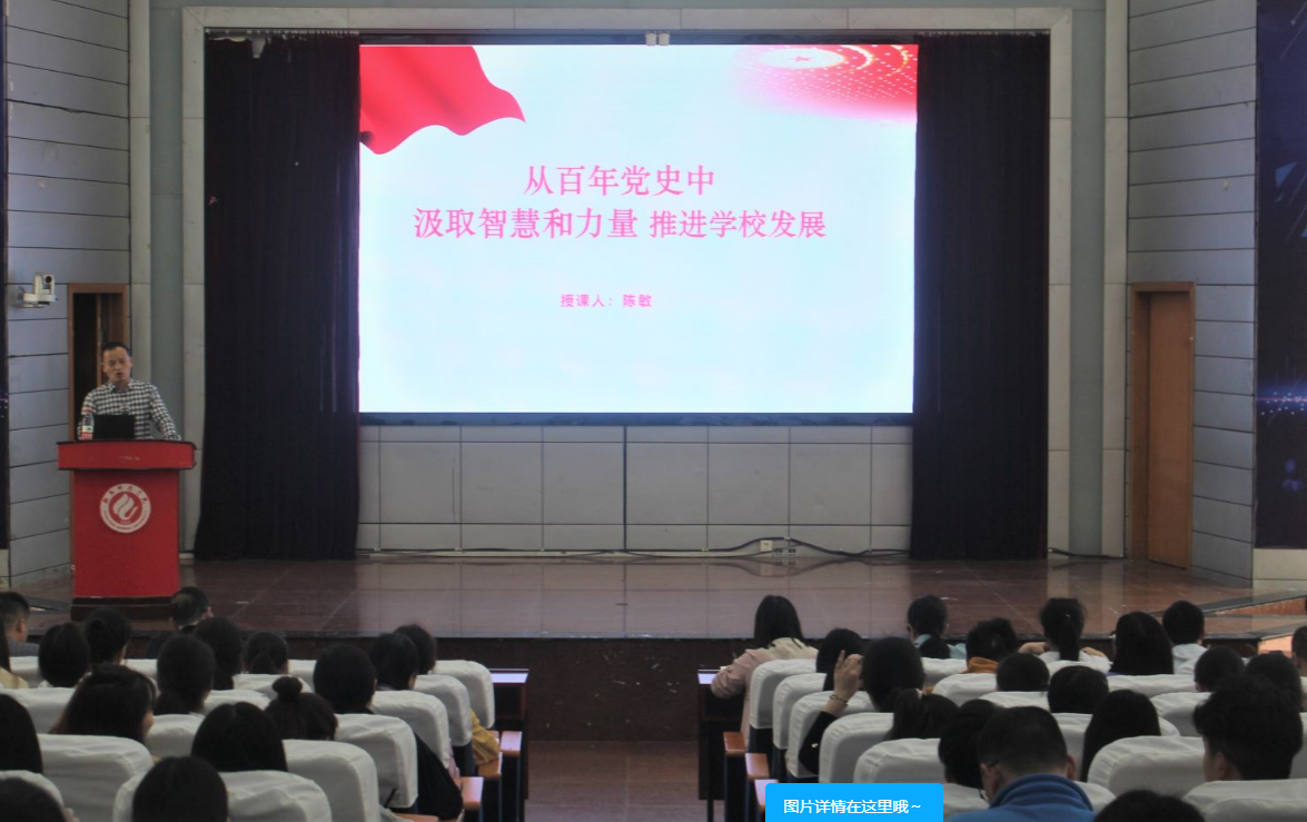 陈敏围绕“学史明理、学史增信、学史崇德、学史力行”的学习总要求,从“充分认识开展党史学习教育的重大意义、中国共产党为什么‘能’、马克思主义为什么‘行’、中国特色社会主义为什么‘好’、扎实开展党史学习教育推进学校发展”这五个方面展开了精彩的讲述。