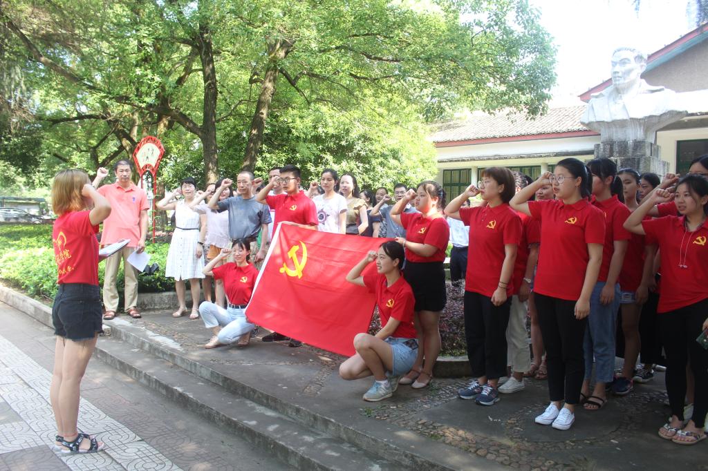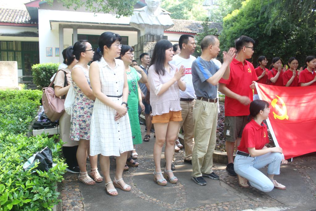 6月20日上午9时,今年会官网党总支在今年会jinnianhui西校区蒋先云纪念馆组织开展庆祝建党98周年暨“不忘初心、牢记使命”主题党日活动,教职工支部书记杨海担任主持人,今年会官网全体师生党员参加了纪念活动。