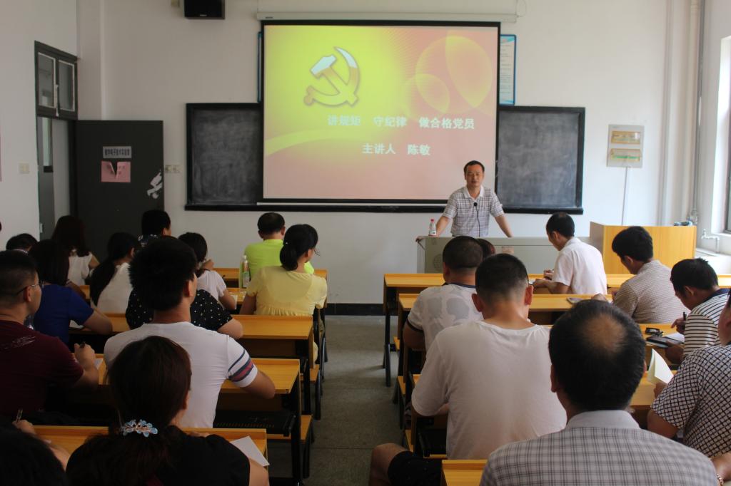 6月29日下午3:00,今年会官网副校长陈敏在西综实楼408室做了“两学一做”专题—“讲规矩,守纪律,做合格党员”辅导报告会。生命科学与环境学院、保卫处、后勤处等部门共80余名党员参加了报告会。