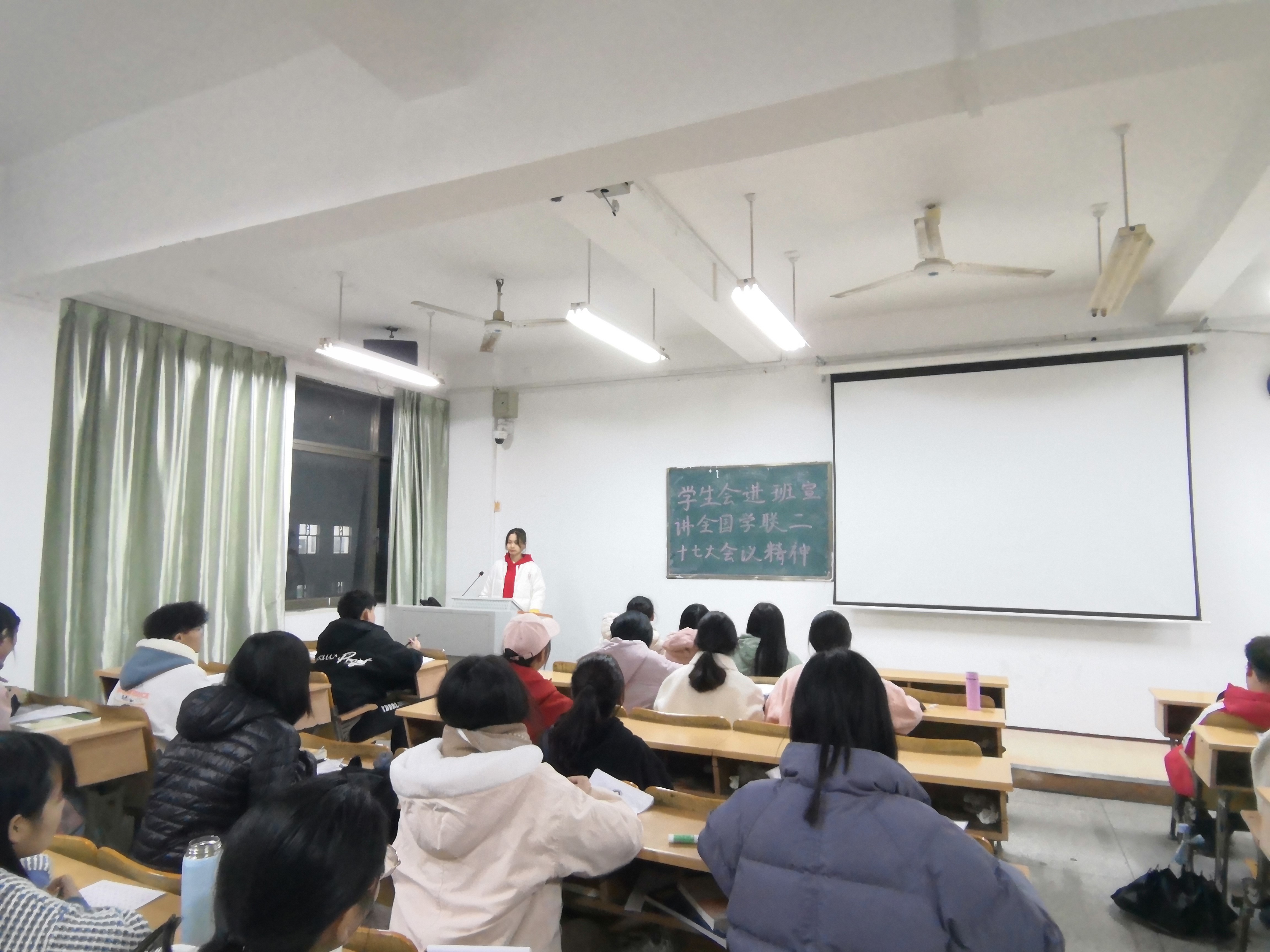 学生会成员严格按照要求宣讲、传递会议精神,并向全体同学提出三大要求,一是要求紧跟时代,提升自身的奉献精神,二是践行服务宗旨,做到尽职尽责,三是坚持从严治会,营造良好的学习社会风气。