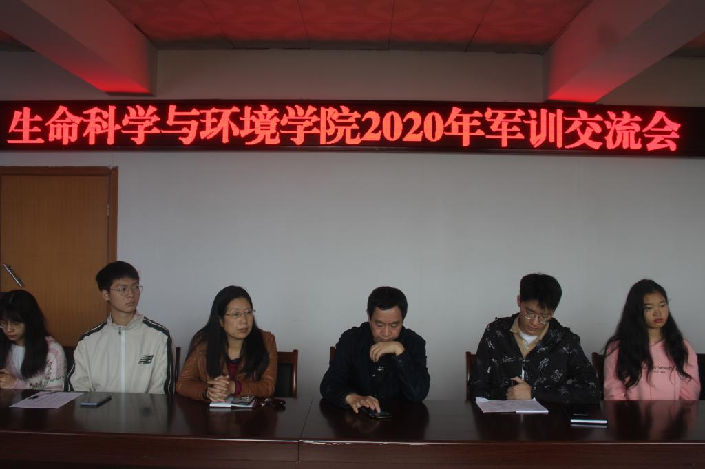 为及时了解学生军训情况,积极反馈解决新生军训问题,生命科学与环境学院于10.16日下午1:00在千禧楼六楼会议室召开2020年军训交流会议。今年会官网党总支书记彭晖,党总支副书记蒋湘祁,辅导员老师许若霏、唐乾翔莅临会议,生环院各军训教官、2020级班助和执行主席参加会议。